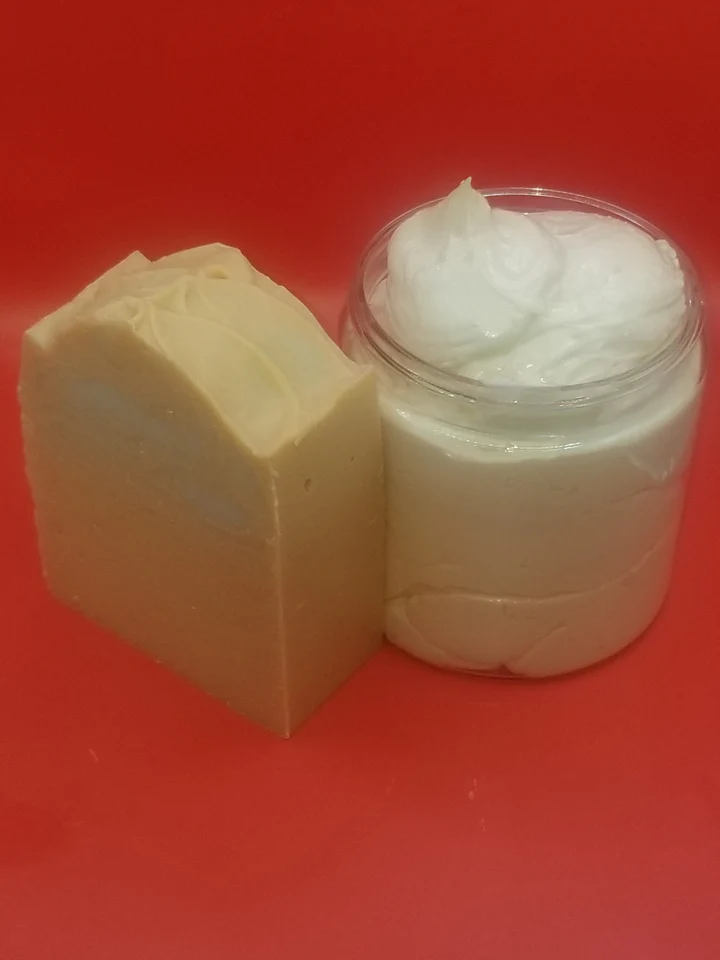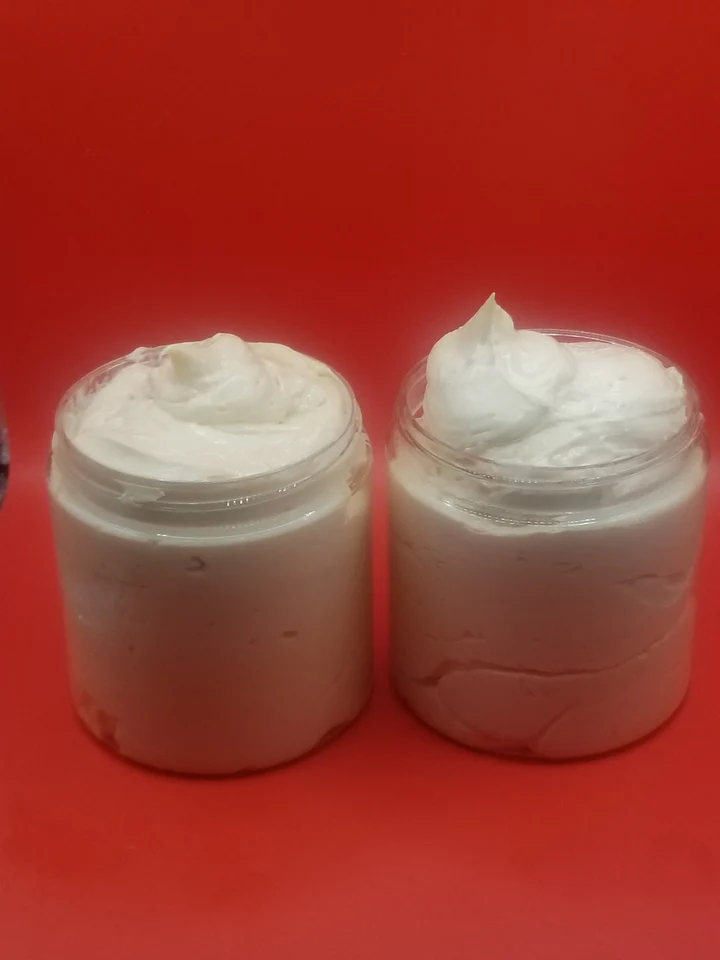 Ingredients: Shea butter, coconut oil, jojoba oil, peach prosecco fragrance oil arrowroot and mica